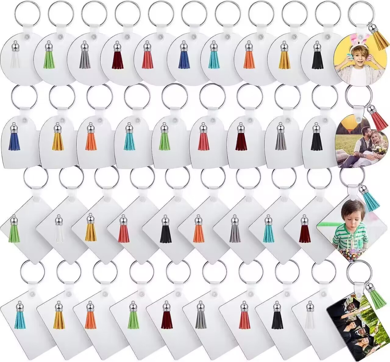 Product Title: Custom Double-sided Transfer Sublimation Blank Set DIY Craft Rectangular Leather Reflective Tassel Keychain
