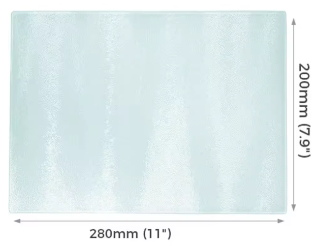 Specifications: Product Name: Sublimation Cutting Board (Tempered Glass) Category: Blank Glass Color: Bright white sublimation surface, transparent on the other side Dimensions: 11 inches (L) x 7.9 inches (W) x 0.16 inches (D) Material: Tempered Glass Use: Sublimation DIY Cutting Board Shape: Rectangular Care Instructions: Hand wash only Features: Durable Temperature and Time: 180ºC (356ºF) for 3.5 minutes