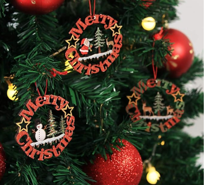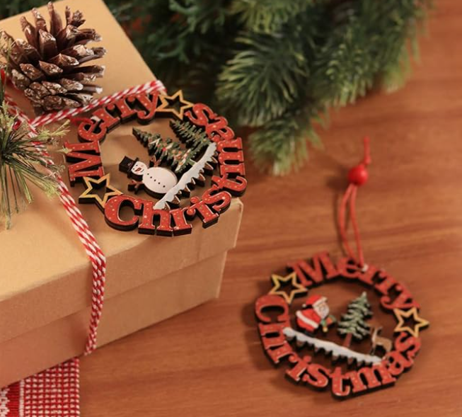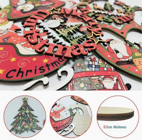 Product Name: Wooden Christmas Tree Ornament Craft Category: Christmas Decorations Size: 3.1 inches (approx. 8 cm) Material: Wood Color: Natural Wood Color Use: Suitable for Christmas tree hanging decorations